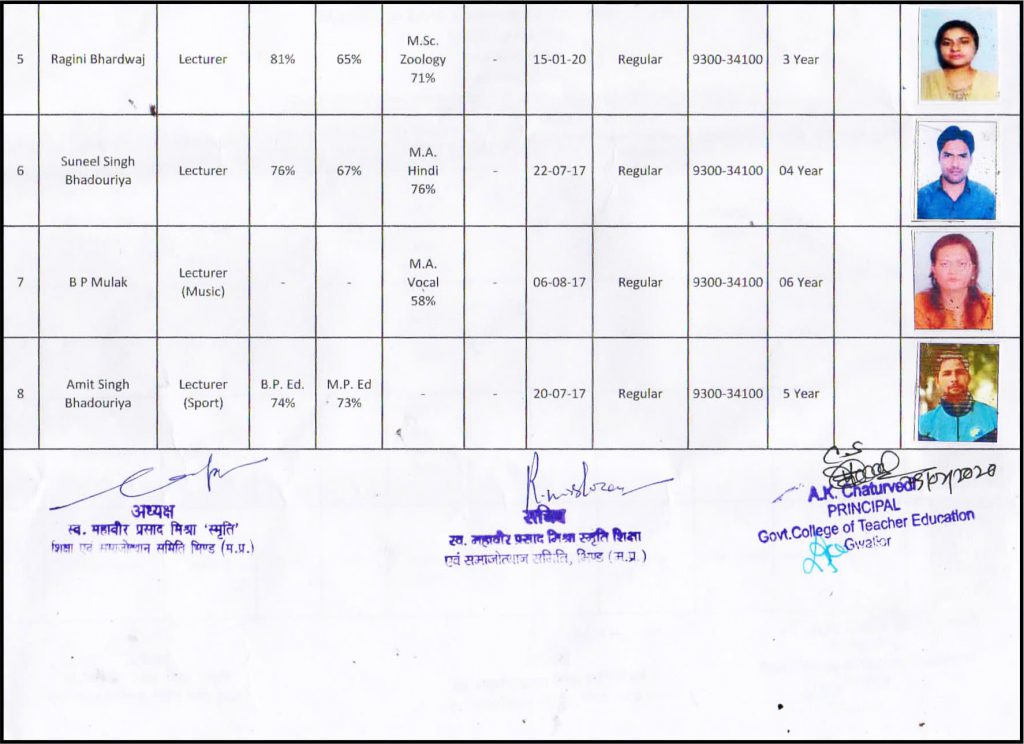 Management of the college is committed to impart qualitative education at higher level. College has dexterously been in service of Education since its inception. Today this Institution has been recognized as one of the best education center in Bhind District. The academic session of the college has lush-green, pollution free campus with all infrastructure compatible to any educational institution in the MP. The college is managed by a Society registered under Society Act, 1860. At present there are faculties in the college Faculty of Education,